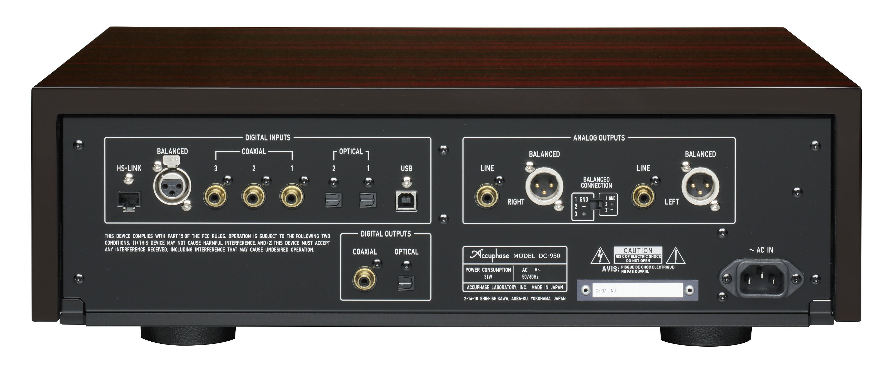 Der DC-950 verfügt über eine Vielzahl von Ein- und Ausgängen inkl. der neuen HS Link Version 2 und USB-Buchse (Typ B). Die Unterstützung der Schnittstelle HS-LINK Version 2 bedeutet, dass das Taktsignal und Datensignal separat übertragen werden können, um den D/A-Wandler mit bestmöglicher Signalreinheit anzusteuern und so optimale Leistung und Klangqualität sicherzustellen! Die USB-Schnittstelle erlaubt es, einen Computer anzuschließen und hochwertige Musikdaten (Abtastfrequenz bis zu 384 kHz/32 Bit) oder 11,2896 MHz (1-Bit DSD) in bester Klangqualität wiederzugeben.